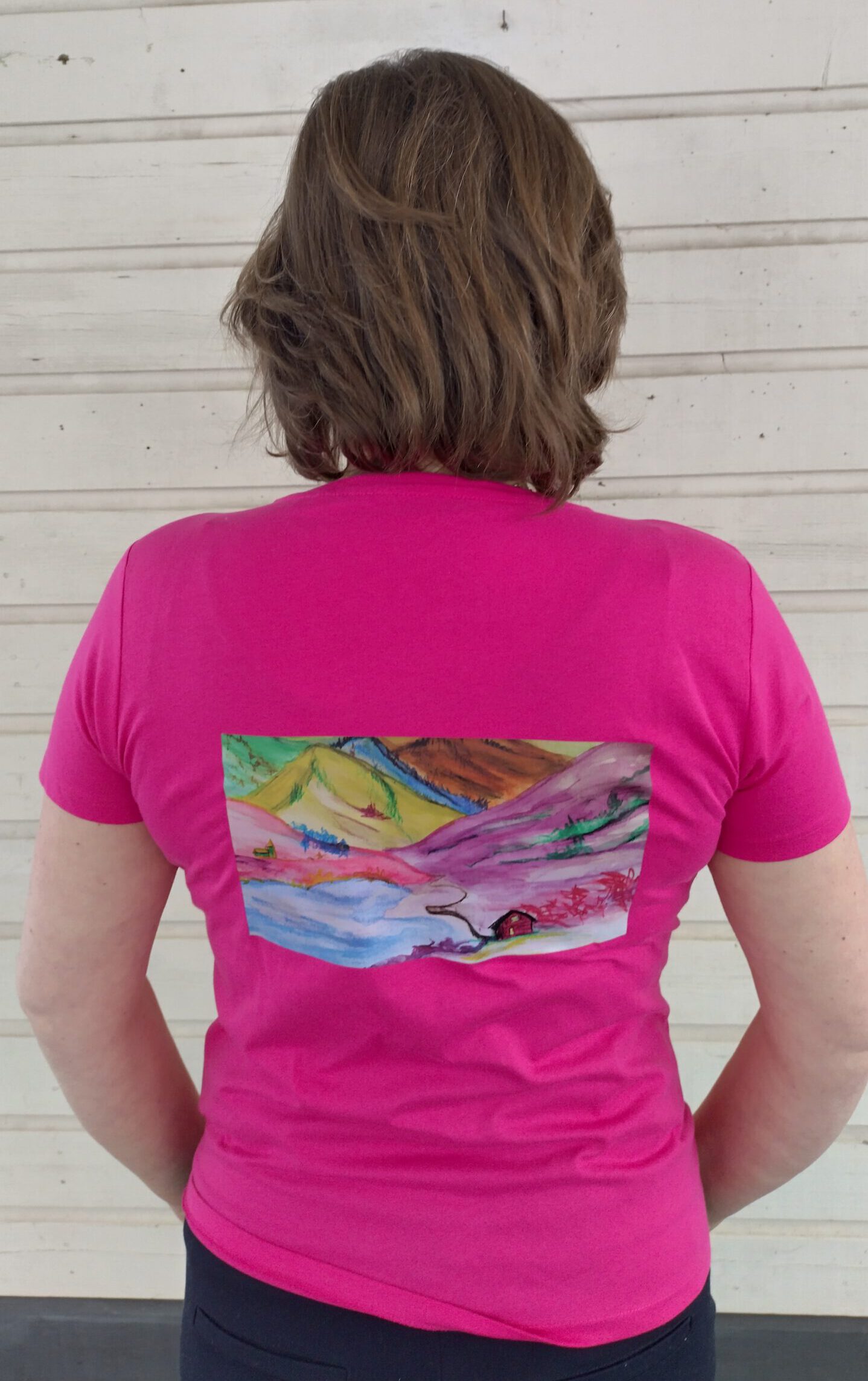Met mijn kunstwerken als ontwerp laat ik leuke en unieke kledingstukken afdrukken. Voor zover mogelijk gebruik ik hiervoor ecologisch/biologische katoen. Andere combinaties van afbeelding en of type shirt en kleur is mogelijk. Stuur me daarvoor een bericht via de contactpagina.