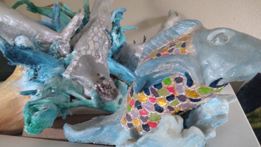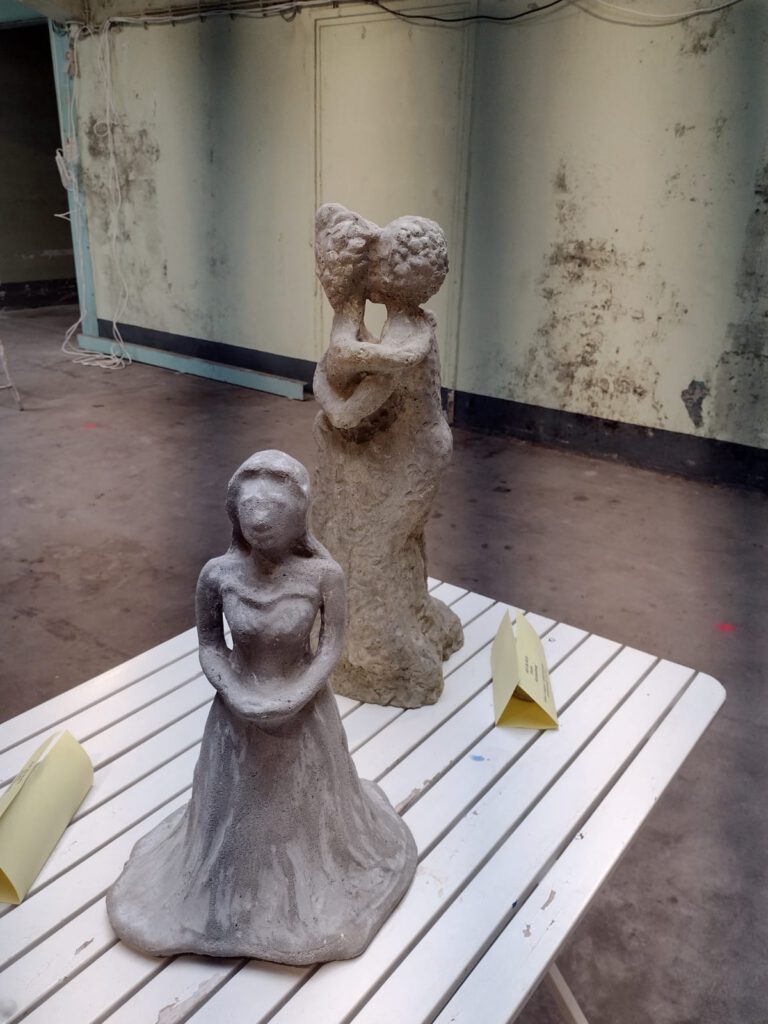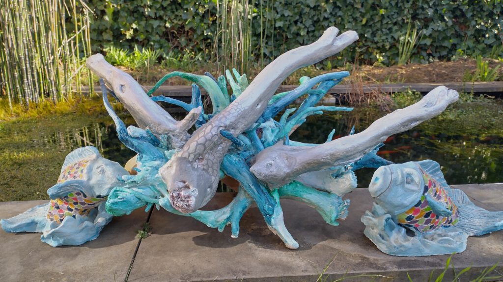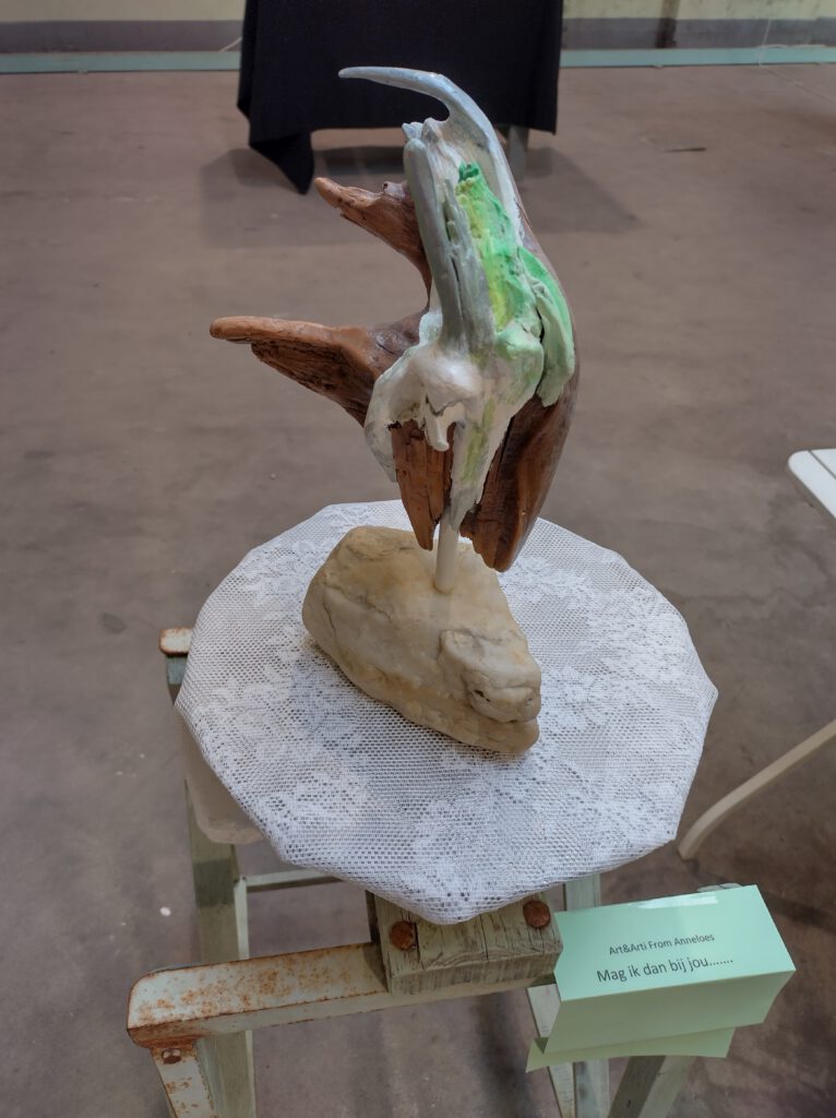 Speksteen; Shine a light on meKlei en hout; Nina ballerinaStronk, Zweden; From Sea to LandKleiwerk; Fish keep shiningNoorse stronk; Mag ik dan bij jouKleiwerk; Veilig dicht bij mijStronk uit IJssel; Net geen ElandStronk uit IJssel andere zijdeNoorse stronk; KoraalrifBeton gegoten 1Strong lady / 2 omarm me en dans. Expositie Senzora Fabriek raambuurt Deventer
